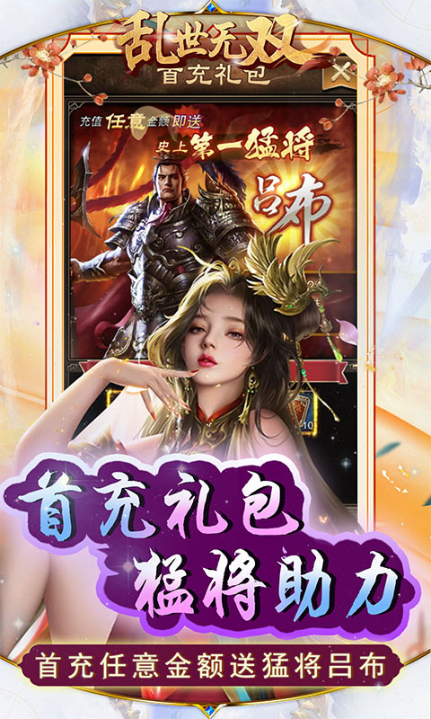 ★VIP奖励免费领,首冲任意金额送猛将“吕布”,助你一臂之力