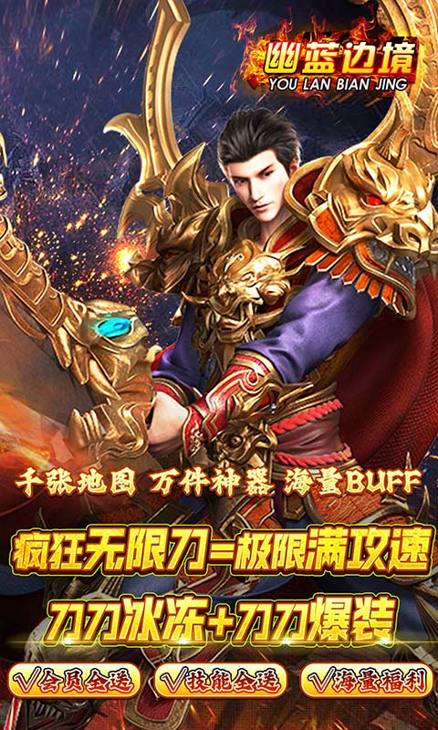 《幽蓝边境(零氪送顶赞)》开局送全套终极技能,再送刀刀切割,刀刀冰冻,GM特权更有掠夺斩杀,等变态buff,助你砍遍全图!神豪特权更是可以无限领取充值币,一步到位,爽翻天!多余货币也能无条件兑换充值积分,肝帝一样能称王!超爽打金传奇,等你来战!