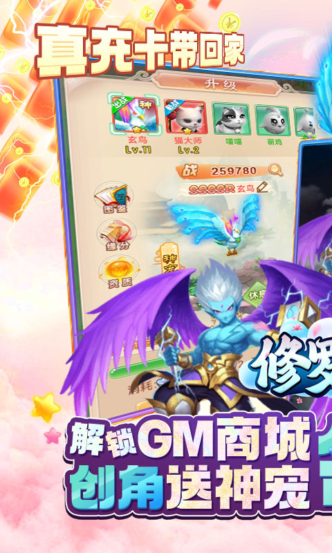 ★后缀说明:开局即可免费获得神宠,更有GM商城强势来袭,无限资源商城豪礼钜送,充值一步到位,每日领取海量神兽、仙玉卡;每日签到也能获得仙玉卡,还有诸多获取仙玉卡的活动等你来发现!一起来畅游仙侠世界体验无限充的快乐吧!