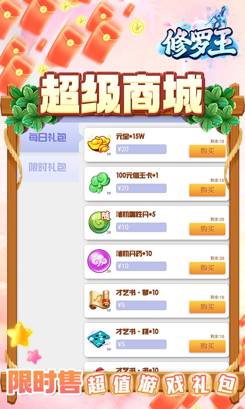 ★游戏内有超级商城,所有充值均可获得余额币,各种极品道具装备随意兑换,让你的修仙之路变的更轻松!