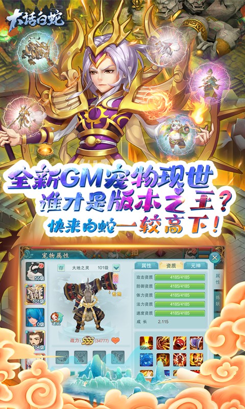 《大话白蛇(GM免费刷充)》是一款仙侠类回合制手游,突破传统回合制观念,搭配各路萌宠,以一控三助你横扫三界仙魔!全新合宠玩法,普通宠物也可力战各路圣兽,登录送万元真充,可激活线下自动返利,让你体验内部福利号的游戏快感。各大职业,相生相克,你的人生由你主宰,你的命运由你掌控,只为让你体验经典非凡的修仙之路!