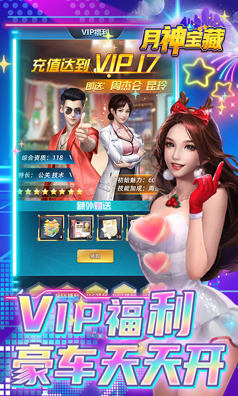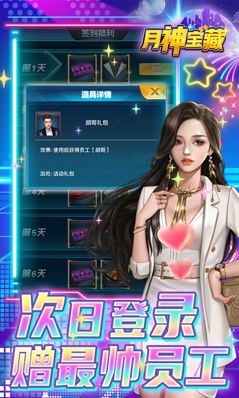 《月神宝藏(天天豪充)》是一款商业经营养成手游,游戏以玩家第一视角生动呈现一个商业帝国的崛起,带领玩家体验叱咤商海风云的快感。欠款风波,收购公司……数不尽的商业运营剧情应有尽有,体验超强代入感!本游戏力求在视、听、玩全方位,把玩家引入并征服一个充满斗争的商业世界!芙蓉如面柳如眉,巧笑倩兮向君偎,一顾倾城的美人、家族成员相助,钱权在握,无出其右!告别枯燥乏味的刷怪升级,抛弃模式单一的经营玩法,各行各业金牌员工、商业巨头相助,与其他商业帝国对抗,岂不快哉!