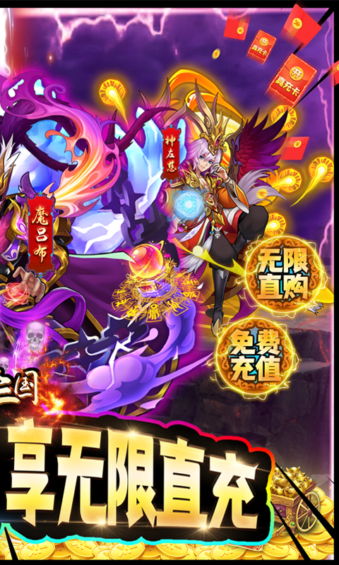 ★创角即送:VIP10、千元真充卡*1、元宝*20万、铜钱*500万、500GM直充卡