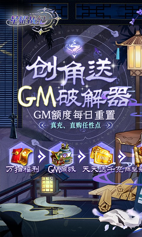 《星耀战纪(黑科技无限充)》是一款以架空三国世界为背景的超必杀策略激斗卡牌手游。游戏借用了三国中大家熟悉的人物和人物关系,构建了一个架空的演义世界。创角即送GM工具,破解后领取极品英雄,再赠永久时装、千元充值卡、百万钻石。每天上线自动重置GM充值额度,直接点充,0氪畅玩。签到送百次抽卡,每日登录每日领取,万抽福利助君轻松组建极品武将阵容。你还在等什么呢?快来率领星灵们过关斩将、收复城池、击败魔王,拯救演义世界吧!