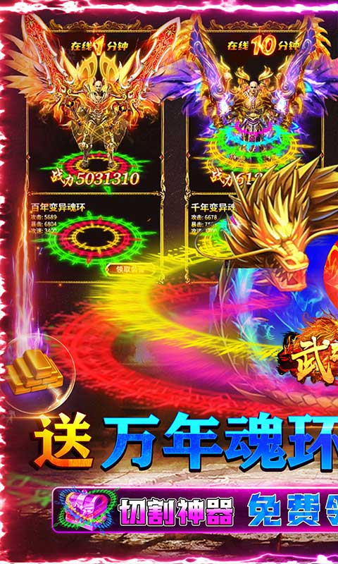 《武器之王(斗罗切割之王)》超变版本融入斗罗元素,上线免费送万年魂环,每日完成任务送海量充值,终极切割神器免费领刀刀切割+999万,合服后每日攻沙还能瓜分海量充值币,以上内容游戏全部真实存在~如果没有,你可以直接卸载!!!