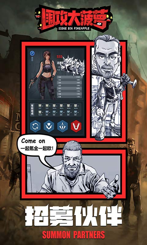 《围攻大菠萝H5》是一款末日题材的放置策略卡牌游戏。一觉醒来,你发觉自己躺在医院的病床上,病房里空无一人,而病房外却是一片狼藉:诊疗室挤满了受伤的患者,地上还躺着许多重伤的人,其中一些正逐渐演变为丧尸……末日之下,丧尸横行,为了生存,你必须快速组建一支幸存者小队,建立庇护所,收集物资、发展科技、制作武器、加工食物,在末日下寻找一线生机,抵抗丧尸的进攻,守卫最后的家园!