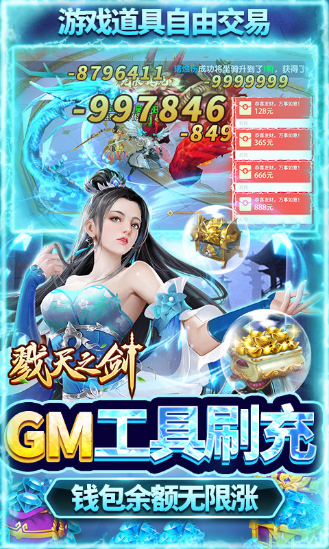 ★后缀说明:游戏内送飞升特权,在主界面图标GM修改器-飞升特权中领取,游戏内有打金刷充功能,每天可免费刷充,消耗刷充余额时可激活线上累充活动;