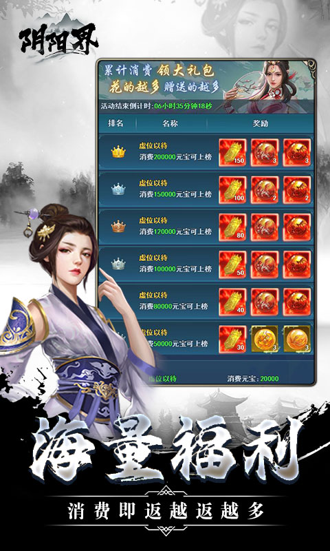 《阴阳界-快意江湖》讲述的一个初入江湖的武学弟子,不断修炼技能、打造装备,在众多江湖豪侠的辅助下,不断变强,并最终练成三大武学天书《九阴真经》、《九阳神功》、《无色界天书》,成为一名集大成者,最终问鼎武林至尊的故事。