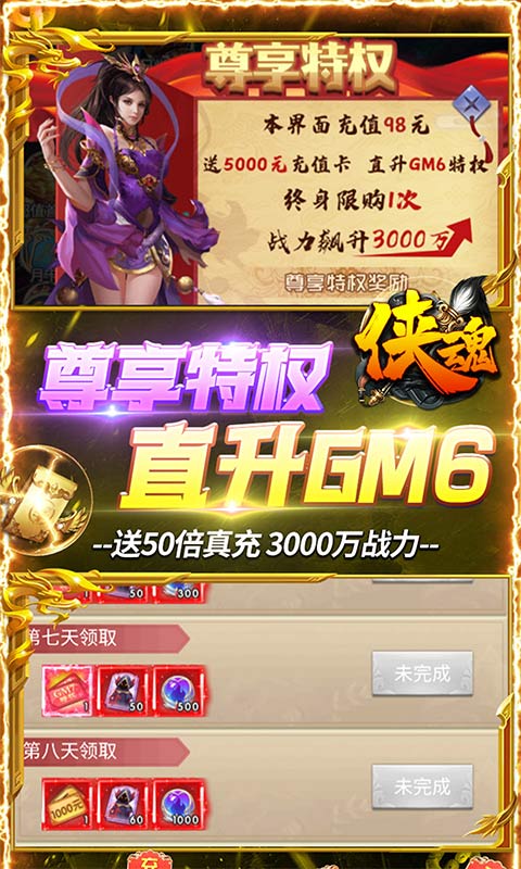 ★全新专属特权:仙尊专属特效称号,提升2000元直充额度,每日免费领取5000元特权专属礼包!