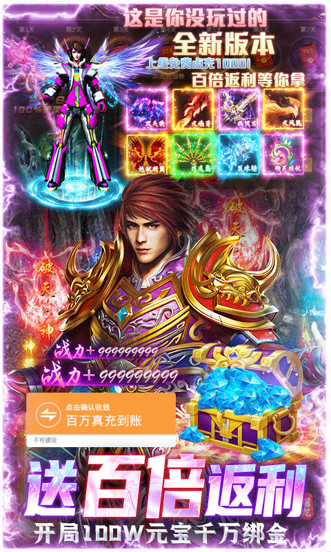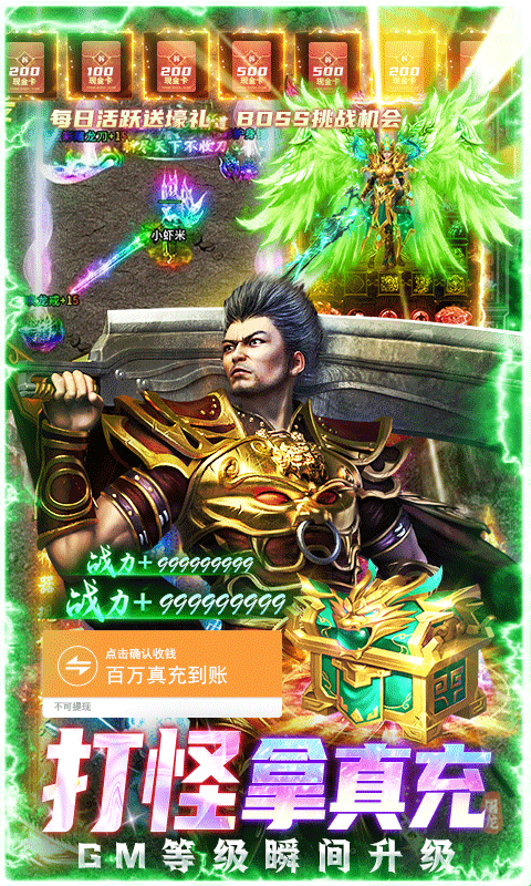 ★升级转生送5万元真充卡无门槛使用,百万真充大礼,全民无限免费送,元宝与GM经验免费拿。