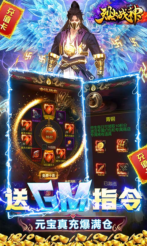 《烈火战神(GM斗罗刷充)》上线送极品魂环、百万元宝、热血神器、炫酷时装,无限福利每日壕领不停!魂环进阶版,打造属于你的至尊魂环;打金副本超高爆率,爆真充卡、稀有道具,每日多次副本次数!上线激活gm特权,快速开启gm商城,绝版时装海量材料无限领取!BOSS爆率全部上调1000%,无限爆真充,福利拉满在线打金!每日领取gm指令,无限领取金币元宝真充卡!快邀请兄弟齐聚沙城,称霸全服!