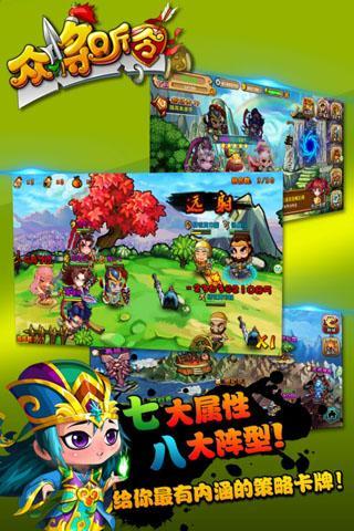 《众将听令》结合了传统回合制RPG与卡牌游戏的玩法,玩家可以体验到卡牌游戏的抽卡乐趣,吃卡升级乐趣,同时还能体验到传统的回合制RPG的完备元素,阵法,装备升阶,强化,宝石镶嵌。更多的属性影响,使《众将听令》的战斗有着更多的组合和可能,也使PVP有了更多乐趣,站位,阵法,装备,宝石,武将的等阶都影响着结果。