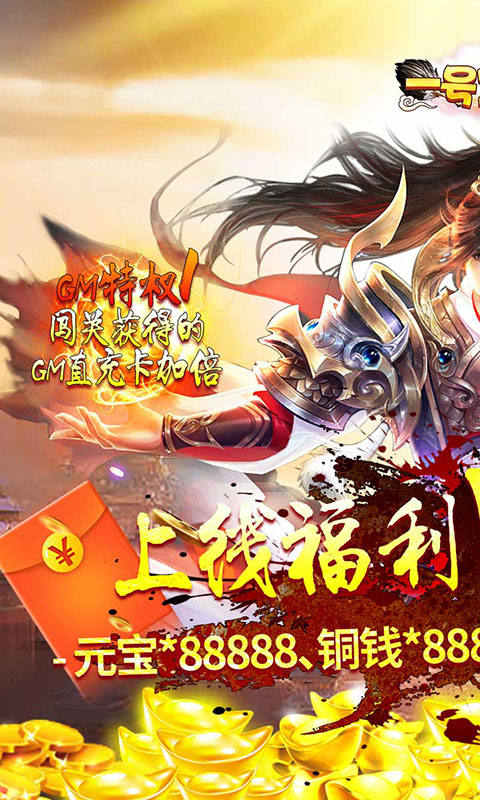 ★后缀说明:全新GM版本,开局自选GM号,上线送GM特权,自选以下一个特权,GM直充卡加倍或主公经验加倍;