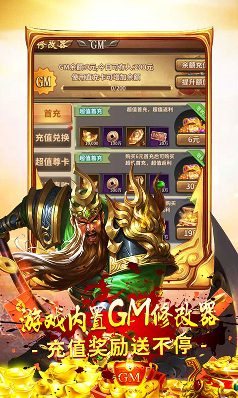 ★游戏内置GM修改器,充值奖励送不停;