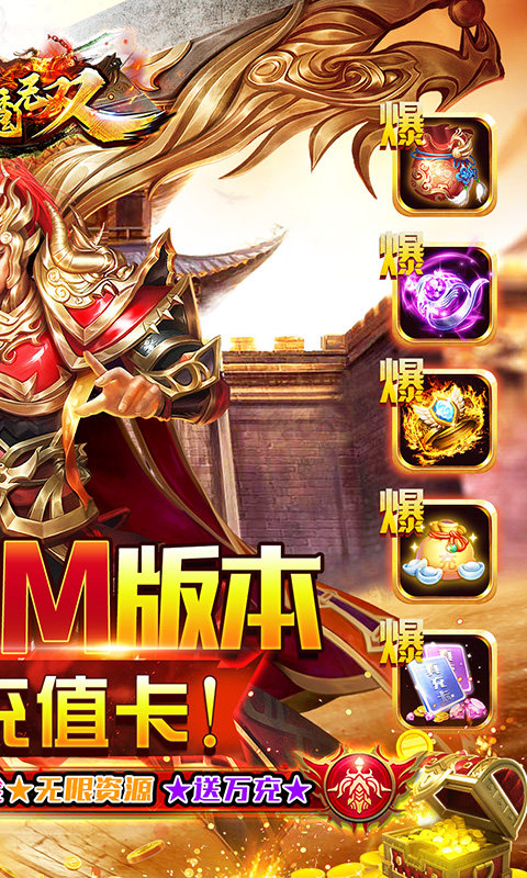 ★后缀说明:全新GM版本,破解系统+无限打金+无限资源+送万充,爆送充值卡