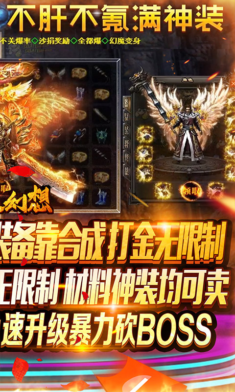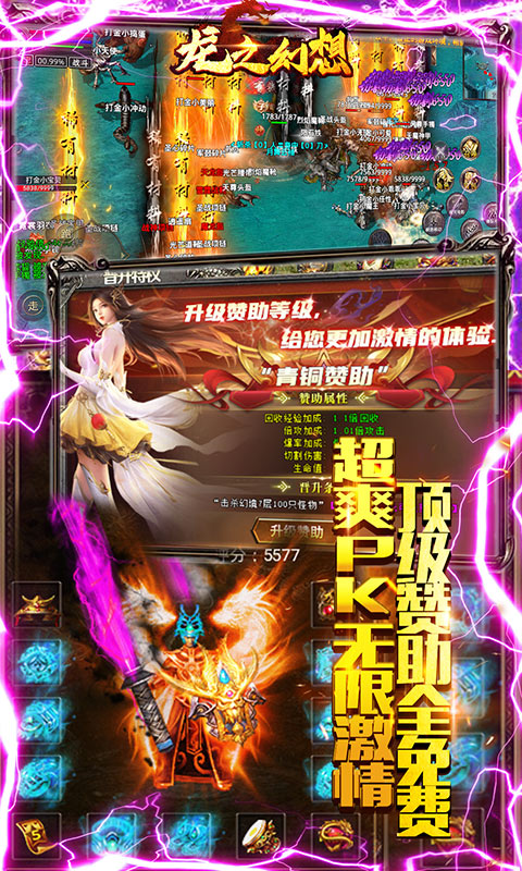 《龙之幻想(赞助全免打金版)》是一款超爽的福利打金英雄合击版传奇手游;来玩就送10w绑元,骨灰玩家切割卷,双倍卷轴;不送其他道具,一切靠打;全图免费打金元宝疯狂爆,赞助全免费,不花一分钱一样满赞助;BOSS爆终极,材料全靠打,装备回收送元宝;经典三职业,自由转换,玩法不在单调;超给力福利,超多打宝地图,超快刷钱节奏,超多玩法活动包你爽翻天;兄弟快上线,今晚的沙巴克等你来激情;
