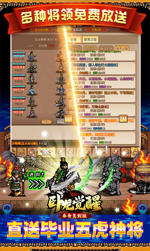 《卧龙觉醒(吞食复刻版)》是一款富有红白机时代三国游戏情怀的竖版策略挂机游戏,这里充满着各种纷争,面对着多方势力,在群雄逐鹿的乱世中,您可以建立自己的城池,招募精兵良将,齐心协力,攻城略地,参与到万人厮杀的战场上。能否在战场上成就一番伟业,成为乱世霸主称霸一方,任由您抉择!