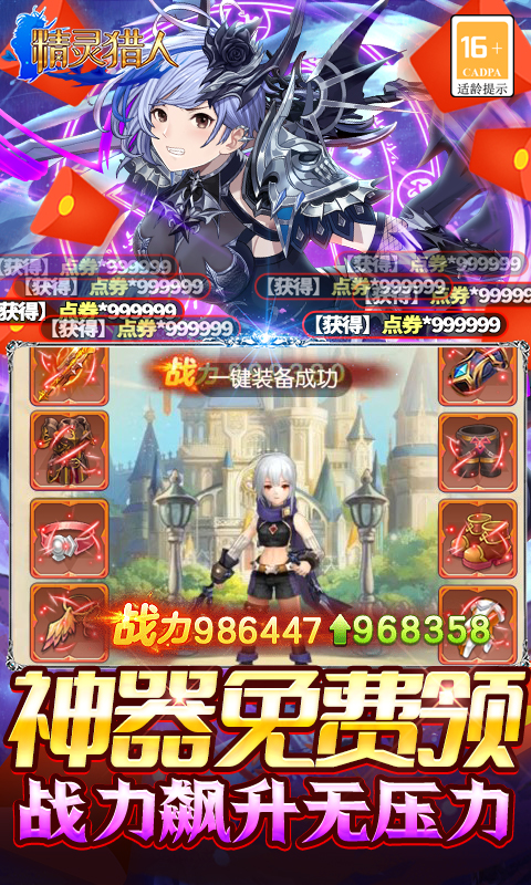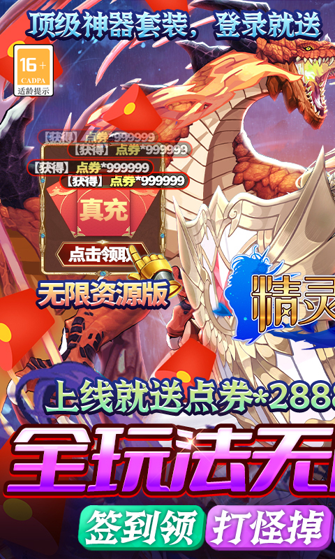 ★战力狂飙,累计登录就送神器套装,还有海量真充卡相伴,只需动动手指,神器真充随便领!