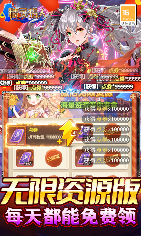 《精灵猎人(无限资源版)》是一款以二次元奇幻冒险为题材的角色扮演类手机网络游戏。创角就送满V满SVIP,可同时拥有五个角色共同对战,有着超丰富的BOSS副本,跨服PK竞争,自由转职,与萌萌宠物并肩作战,展开一场刺激有趣的冒险旅程!