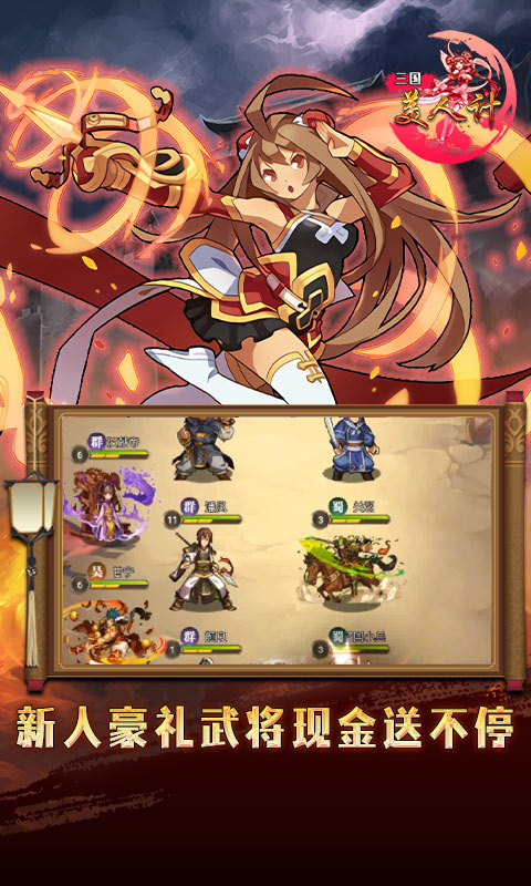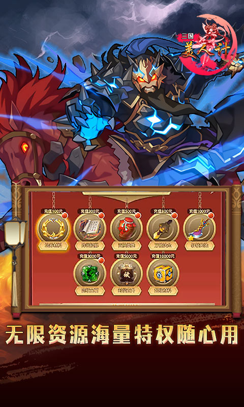 《三国美人计(现金无限充)》经典三国风卡牌手游,游戏内有丰富图鉴,精美画风角色,浓厚国风氛围。超棒的视觉体验。游戏内创角更有惊喜福利满满,各种珍品道具,海量真充签到就送!多样游戏玩法,自由组合,策略pk,还原经典三国剧情,乱世纷争,群雄争霸,快来一起体验吧!