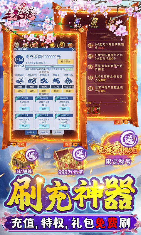 ★GM刷充神器,充值、特权、礼包全部免费刷