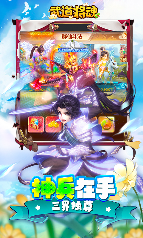《武道将魂》是一款回合制游戏。这是你从没见过的回合制游戏,极速节奏,超高爆率,前爽未有的冒险之旅,三界由你来主宰。开局即送vip,还有各色极品召唤兽、神兽、伙伴、坐骑,等你来驾驭。极具特色的3倍攻速和10倍爆率,无比畅快的游戏节奏和华丽的战斗数值,带给你前所未有的激爽体验。游戏内不仅有挂机闯关、捉鬼、副本等日常任务,而且有竞技场、帮战、世界BOSS等PK玩法,更有帮会、农场、师徒等社交乐趣。上百种特色玩法,让你享受无穷的游戏魅力。在这里,你将可以手握神兵利器,身骑炫酷坐骑,驾驭极品神宠,召集强力伙伴,施展华丽技能,决战武神之巅,成就至尊荣耀。