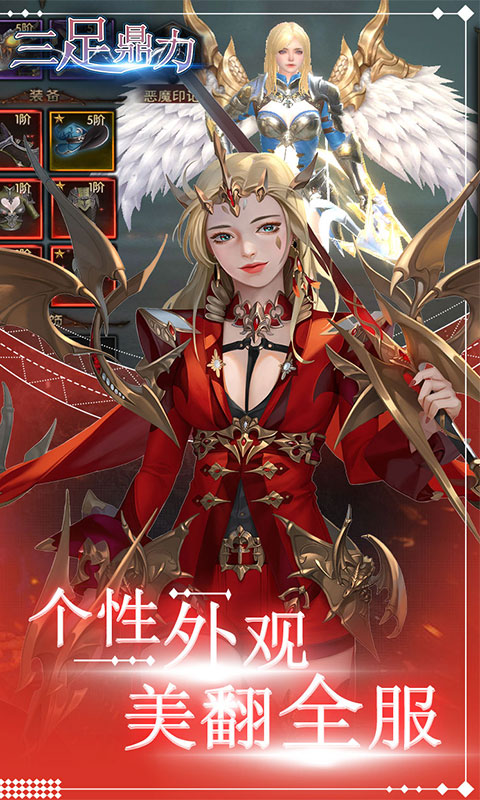 《三足鼎立(送超强神器)》以西方中世纪深渊恶魔入侵为背景,讲述了觉醒的超自然异能者,逐步成长共同对抗黑暗力量的冒险之旅,全新战士、弓箭手双职业设定,组队探险战斗,单人秘境等MMO玩法,独创多武器切换战斗模式,具有策略且多线养成的战斗方式,西方魔幻/机甲/潮流时尚,新颖的美术画风,场景暗黑清晰,富有感染力,界面简洁,沉稳,大气,添加现代元素 丰富游戏内容,避免审美疲劳。