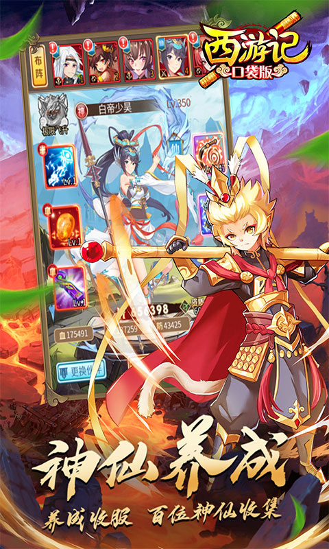 《西游记口袋版》仙魔卡牌手游巨作,炫目的技能与多样的伙伴组合,开启策略回合制战斗新时代!用独具东方神韵的时尚画风,以Q版人物的奇特色彩,体验另类降妖除魔寻宝之旅,亦仙亦魔,到底是天庭的监守自盗还是妖魔作乱,其中的对错黑白孰是孰非,等待你来明辨……