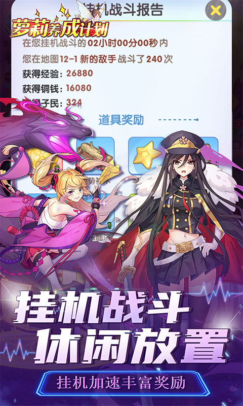 《萝莉养成计划》是一款放置休闲二次元养成手游,游戏以日本战国为背景,将古代日本诸多武将幻化成各式美少女,萝莉?御姐?兽娘?机械战姬?应有尽有!游戏将互动养成和战斗冒险相结合,以多位萌娘之间的阵容搭配为核心玩法,配合独特的挂机探索,给玩家带来全新的超休闲放置体验!!