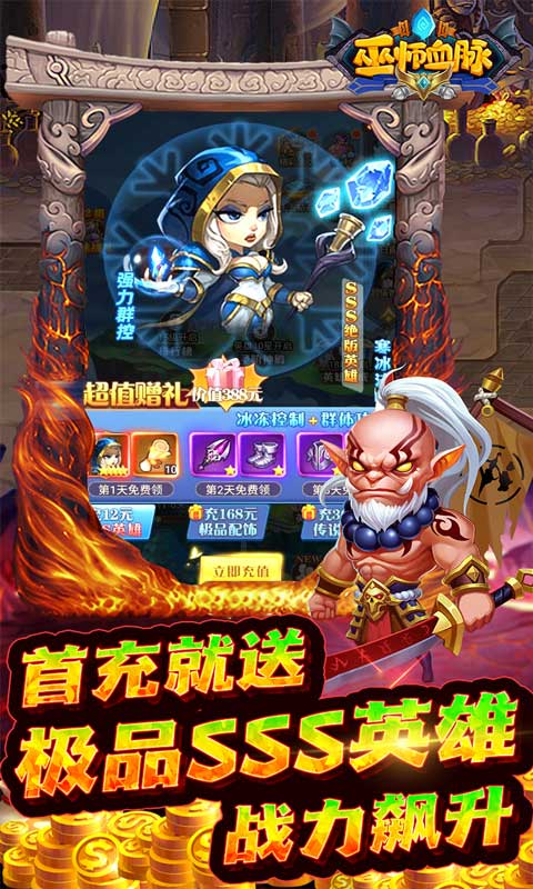 《巫师血脉(送万充无限抽)》是一款最新的魔幻卡牌游戏,玩家可以选择招募英雄组建你的战队,上线送钻石28888,金币100万,万元充值卡,闯关送500抽,日常活跃每日送30连抽,连登送千万钻石,海量VIP经验,SVIP直升满级,福利直接拉满,海量的副本内容等你挑战,不断升级解锁更多玩法,对游戏感兴趣的话不妨点击下载试试!