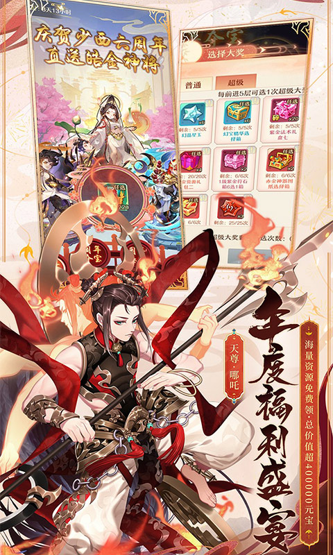 西游卡牌王者《少年西游记》喜迎五周年,福利狂欢节豪礼免费送!史上最强福利来袭,7月7日周年庆当天,登陆即送幻金神将!每日狂撒红包雨,抽现金锦鲤,还有养成资源等你来拿,累计价值超200000元宝,你绝对不能错过!