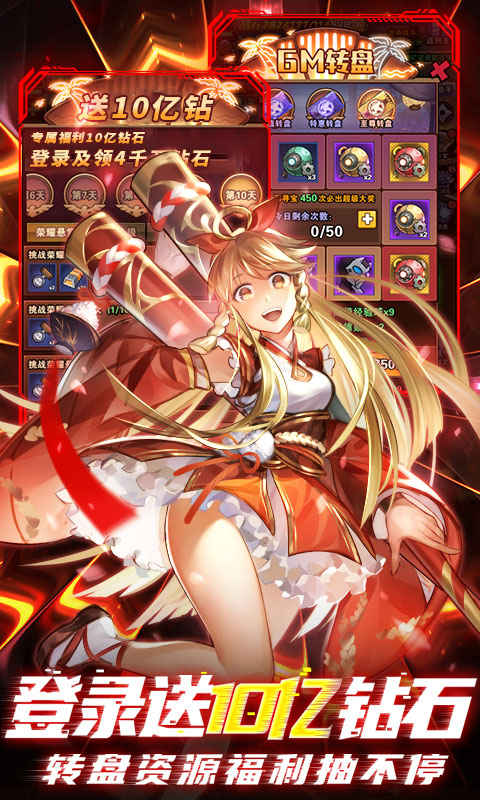 ★版本特色,登录送10亿钻石,转盘抽不停,资源买到爆。