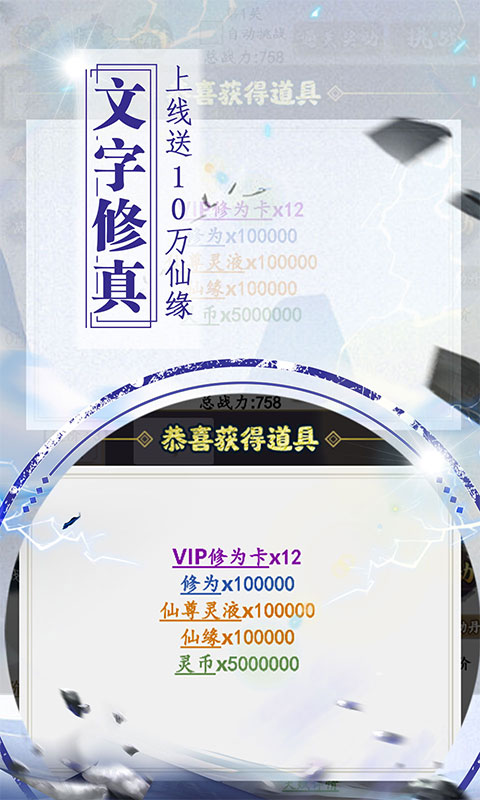 ★上线送10万仙缘,500万灵币,10万修为,开启修真之路