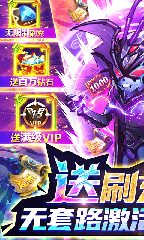 ★后缀说明:游戏内有无限刷充,无限招募系统,在线就送真充卡,无套路免充激活线上返利