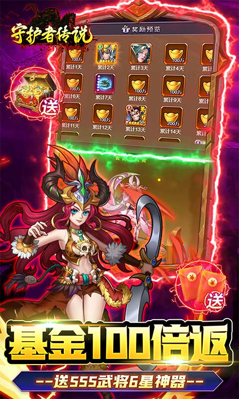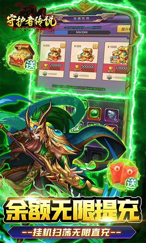 《守护者传说(余额无限提充)》是一款三国题材的卡牌养成游戏,招募三国名将为己所用,策略阵容搭配,与三国名将一起过关斩将,争霸天下!余额无限提充,挂机扫荡无限获得直充币,破解工具免费支付首充礼包,直购礼包5星神将,成长基金,免费余额无限提充,钱包额度可直接在免费直充无限提取充值!每日签到无限送真充!直充币/真充可激活所有累充活动!