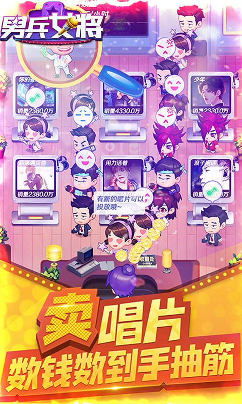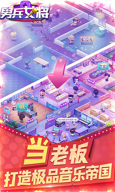 《男兵女将(送SSR送千抽)》是一款音乐类模拟经营手游,在这里你可以经营一家音乐公司,签约明星艺人,聘请导师和员工,收集专辑曲目,录制抖音热门歌曲,并通过门店经营把唱片销售出去,销量高的唱片还能参与格莱美评奖,旗下艺人可自由搭配组成偶像团体参加星光大道、全民选秀、音乐节等综艺节目为公司积攒粉丝和人气,打造全球一流音乐唱片公司,实现自己的明星梦想计划!超自由模拟经营游戏,完美还原让您体验娱乐老板的每一天。新人出道,唱片发布,当红炸子鸡,娱乐天王,一步一个脚印的经历。