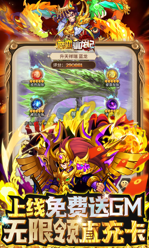 ★开局赠送史诗源石、龙之精华和神龙精魄,可以孵化出龙珠,唤醒神龙,龙珠依附神龙,借助其神龙之力与助攻协同作战,享受战力加成,此为送GM召唤神龙。