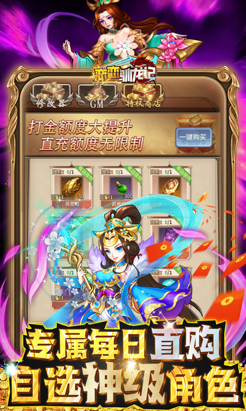 《恋恋驯龙记(送GM召唤神龙)》是一款以三国时代为背景,深度打造的放置养成游戏大作,丰富多样的对战让你体验最具策略的放置卡牌玩法,武将搭配、战略布阵将助你征战三国时代!