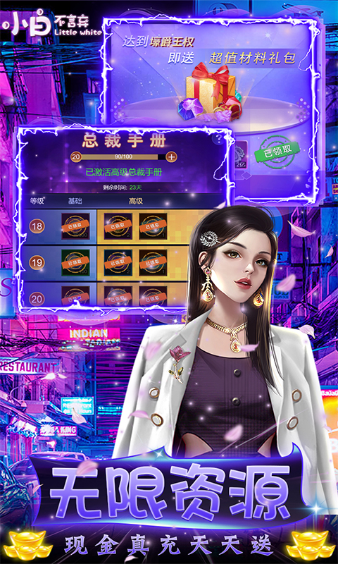 《小白不言弃(版本GM全免)》是一款网络主播题材的养成卡牌游戏,作为一个直播行业的新星天才,我们将于众多知名主播、巨星相聚,并开创属于我们自己的娱乐帝国;上线送GM特权,送开哥,送兰博基尼毒药,100%纯正真充卡,拒绝各种文字陷阱,全系解锁的SSR主播活动,玩家每天可免费领取一名SSR主播,为你心中的那个他/她助力打CALL;开局送1兆现金,体验土豪榜一的快乐。
