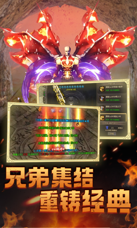 《龙皇传说(神器无双)》是一款真正的复古传奇手游。沿用端游《传奇》的登陆页面、单职业形象、最大程度重现经典,主要玩法以“升级、爆装”为核心,实现了“自由交易、一键回收”真实传奇精彩玩法,喜欢复古传奇风的兄弟绝对不容错过!兄弟情!仇人血!是兄弟就来砍我!