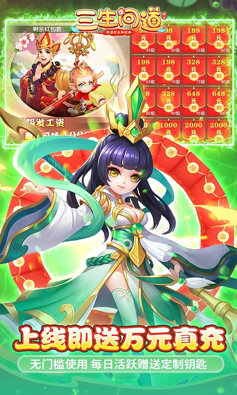 《三生问道(刷充送万充)》是一款原汁原味的回合制经典西游题材手游,游戏以q版人物为主体,配以中国传统神话故事,华丽的游戏品质,华丽的打击体验,刺激惊险的副本玩法,便捷智能的操作模式,游戏有主角、宠物、仙童、坐骑等为一体的战斗系统。