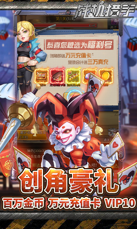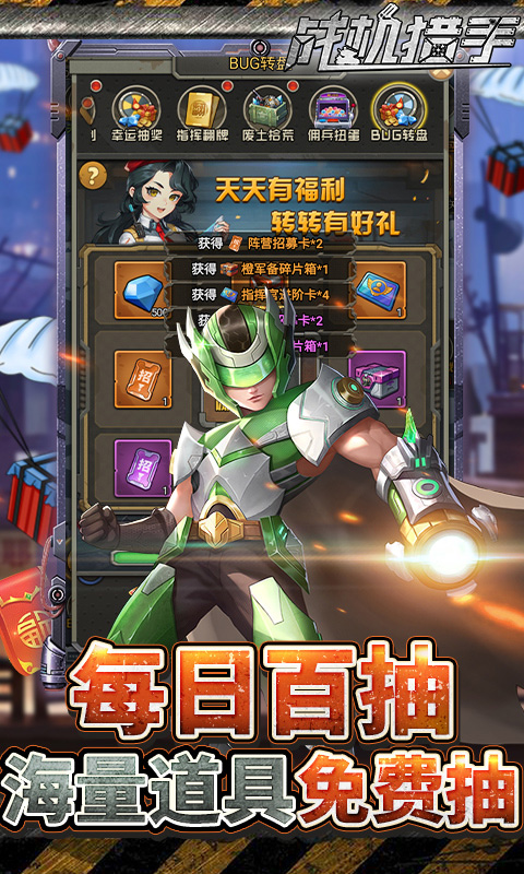 《战机猎手(无限抽送三万充)》是一款集卡牌养成玩法的放置挂机休闲手游,以末日废土为背景,拥有丰富的四个不同阵营且特点鲜明的角色,自由多样的阵营搭配,让战斗更有趣味!游戏上线即送VIP10,88888钻石,百万金币,万元充值卡大礼包!登录免费赠送三万元真充卡,每日在线领百次bug转盘免费抽奖。