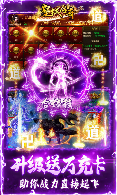 《皇城传奇(1.85合击魂环)》是经典85英雄合击手游。游戏复刻经典85英雄合击系统,有战士、法师、道士三大职业。有威名系统、守卫比奇、传世特戒、角色转生、世界BOSS等玩法。
