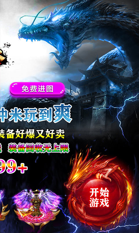 《烈焰归来(免充0氪版)》是一款超变复古神器版本!开局就送百年魂环,超高爆率!超强宠物!助你砍遍全图!游戏内所有装备均可通过红包回收获得海量红包,装备等阶越高可兑换的红包越多!超多神器附带特殊技能,pk打怪强化战斗体验,一刀N特效,刀刀光柱!所有怪物轻松好打,装备好打,沙城争霸、终焉之地,跨服战场等玩法应有尽有!不玩套路,散人当爷,快来加入我们一起激情吧!