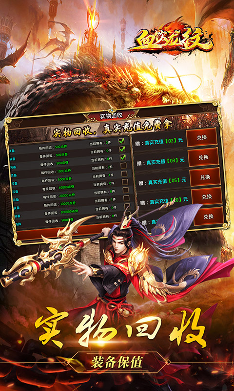 《血饮龙纹(魂环攻速切割)》是一款单职业传奇APRG角色扮演类手游。上线就送满攻速、刀刀切割、全屏拾取、自动回收。没有顶榜,没有捐献。爆率全开,刀刀光柱。首杀、首爆、实物回收、装备保底回收,各种福利拉满,不充钱也能玩得爽。新增魂环、武魂觉醒等系列功能,玩法丰富,告别千篇一律。八个大陆+成神之路,让您尽情探索。约上昔日兄弟一起走进这全新的玛法大陆吧。