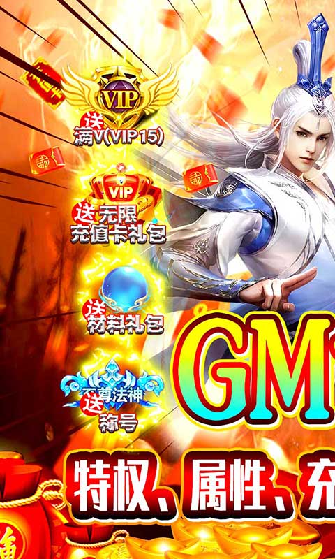 ★上线送满V(VIP15)、无限充值卡礼包、绝版称号、材料礼包