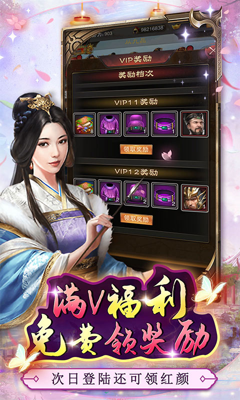 ★激活月卡、终身卡每天可领取金条、元宝、充值卡豪礼,首次激活更有红颜貂蝉相赠!
