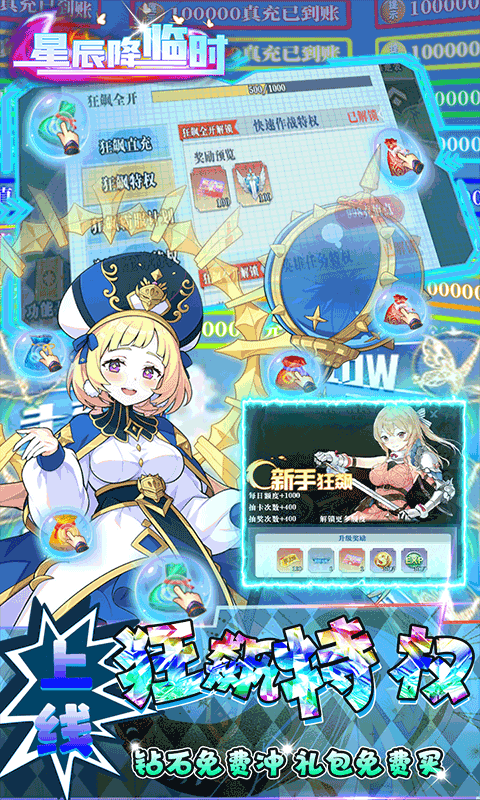 《星辰降临时(提额刷充狂飙版)》玩刷充提额,品大佬人生!!!最奈斯最彪得刷充提额版他来了;真正做到刷充提额全免费,搞档位陷阱再也不是门槛,提额券可以积攒数量一次爆发,直接光盘!最强【狂飙】科技,直接刷新三观,无套路直接冲!【大嫂宝库】悄悄上线,都是好东西,童叟无欺;【狂飙工具】直接修改数据,说改就改,动动手指千百万;这年轻人,还不来玩?