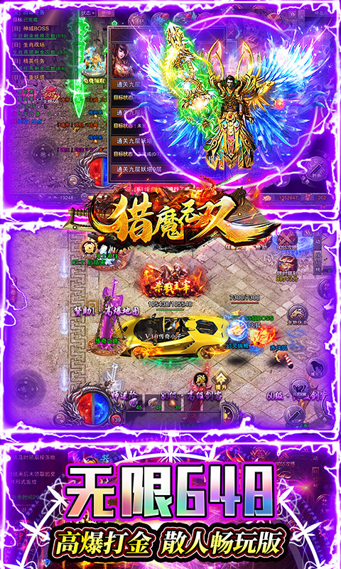 传奇烽火再起,热血英雄谁与争锋。全新火龙三职业复古传奇《猎魔无双(新火龙无限648)》热血上线,上线送千元充值卡,爆率全开一切靠爆。经典月灵、武灵、幻兽陪同战斗,上手简单,遍地BOSS,刀刀光柱,神装随便爆,稳定靠谱。激情跨服玩法,召集兄弟,重聚沙城,续写传奇新篇章!