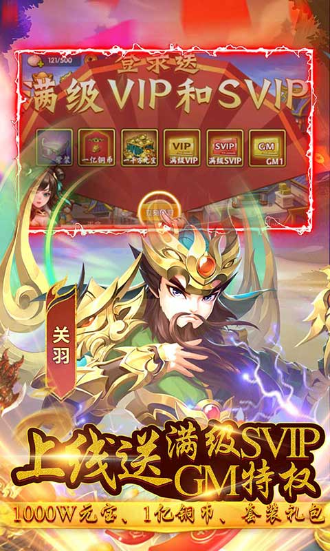 ★创角色GM1,满级SVIP、1000W元宝、1亿铜币、套装礼包。